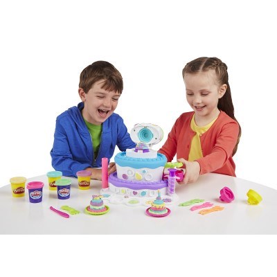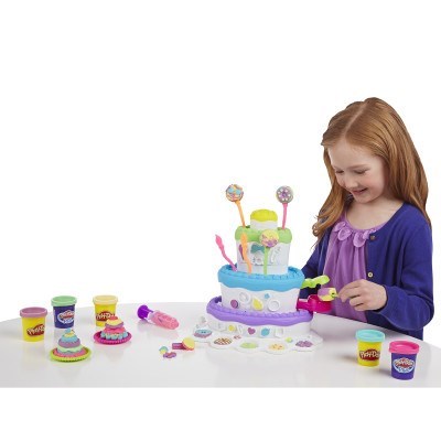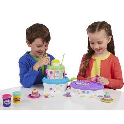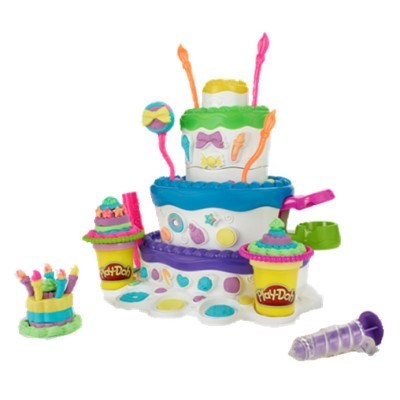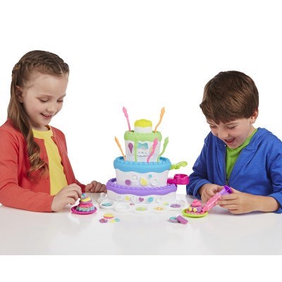Stack up the fun at your very own Play-Doh birthday cake extravaganza! This 2-in-1 Cake Mountain playset lets you make amazing pretend layer cakes with the cake press. Then you can make "frosting" with the softer, smoother Play-Doh Plus compound. Serve your creations to your friends, then mash them up and start all over with a new delicious-looking treat!