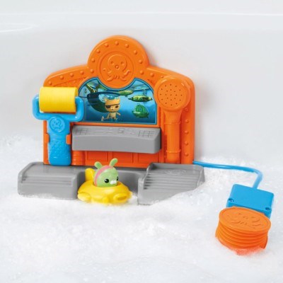 When missions get messy and leave a Gup in less than shipshape condition, the Octonauts can pull into the Gup Cleaning Station! This bath toy attaches to your tub wall with suction cups to make bathtime a time to play. Use the pump to activate the shower, use the squirter, and soap up your Gup for good, clean fun.