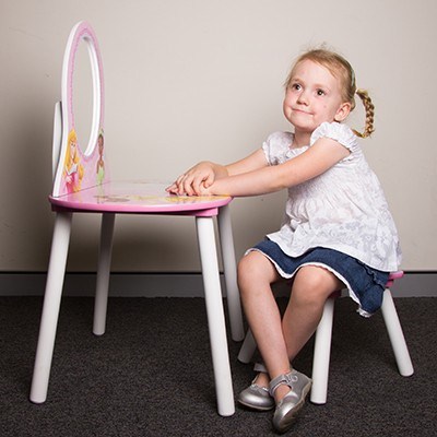 Boasting a built-in Mylar mirror, this desk is an ideal place for girls to do their hair comfortably. Mylar mirrors are shatterproof, making them safer than glass if they do accidentally get broken. The desk is also the perfect place to sit down and draw or do some fun colouring in, or read a favourite story. Your little girl will also love playing with her dolls on this table and she can lay them on the table or stand them against the mirror for display purposes when they're not in use.