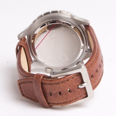 Rugged and masculine this DKNY watch for men is the perfect choice for any style savvy man. It features an over-sized round dial, solid stainless steel body and super soft leather strap. The chronograph feature includes 3 sub-dials adding extra functionality plus the timepiece is also water resistant to 50 meters making it great for work or play.