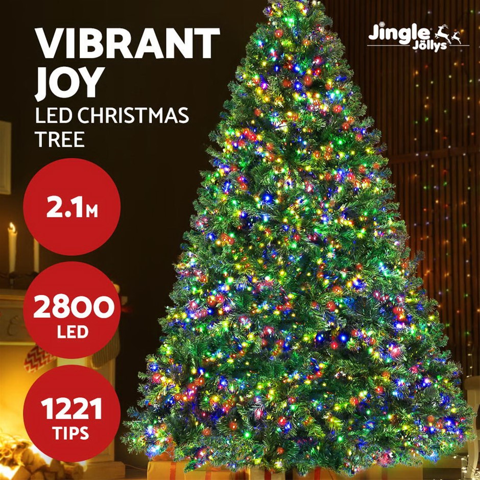 Features2.1m LED Christmas tree1221 tips2800 multicoloured LED bulbsEight lighting effectsSturdy powder-coated standNo tools required for assemblySAA-approved AC adaptor