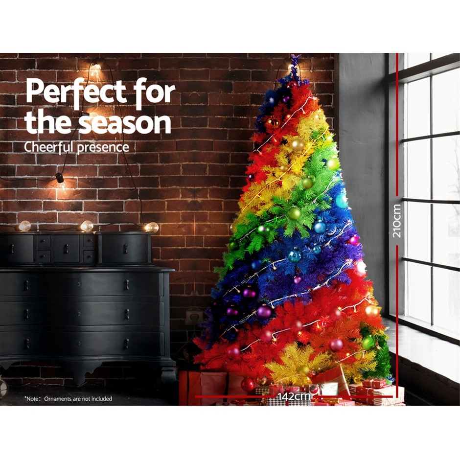 Make it a beautiful colourful Christmas with our fine faux Jingle Jollys Rainbow Christmas Tree to spruce up the occasion. Looking ever so real, the 2.1m tall tree features 1531 well-placed PVC tips for an extra-thick and lush look, with plenty of space to hang your favourite ornaments. The tree is symmetrical and compact with strong bushy branches that fan out wondrously. Not least, the tree is easy to assemble with no tools required, and fast disassembly too for storage until the next yuletide season comes along. Share the spirit of the season with our authentic-looking faux Christmas tree and add more joy to the most wonderful time of the year for everyone.
