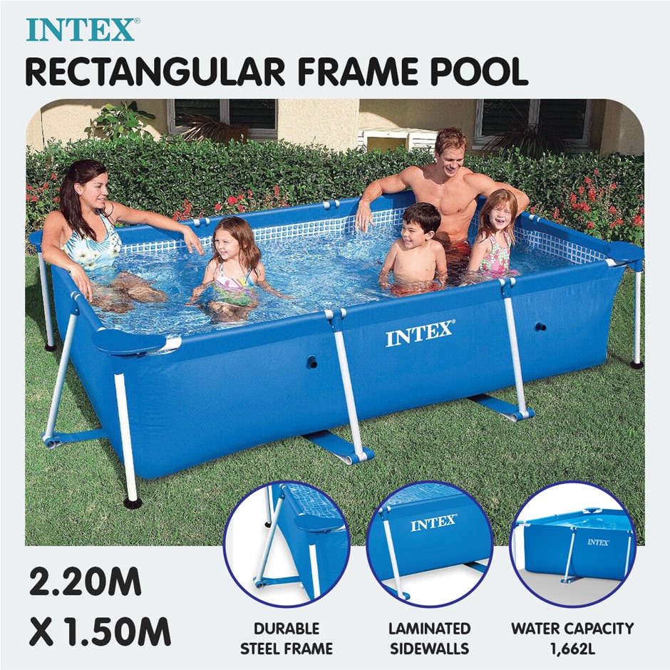 Looking for an above-ground pool that would not take up the entire yard? The Intex 2.2m x 1.5m Rectangular Frame Pool delivers family-sized fun in a compact and sturdy design! Featuring strong steel frames and laminated sidewalls, this above-ground pool will keep your kids active all summer round. The mosaic tile print is bright and refreshing, while the solid blue exterior looks good in any yard. The pool is also equipped with a convenient drain plug and connection holes for an optional filter pump.WARNING!Children have drowned in portable swimming pools.Ensure active adult supervision at all times.Do not leave children unsupervised in or around the pool - keep them within arm reach.Pool fencing laws apply to this pool. Consult your local government authority for fencing requirements.Suitable for children 6+ years.FEATURES: