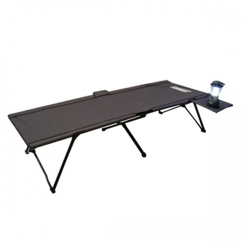 Great, true twin sized (large single) stretcher with a quad fold design. It packs away into a very convenient and compact size.Convenient side table with cup holder attachment can be attached to either side of the stretcher (lantern not included).