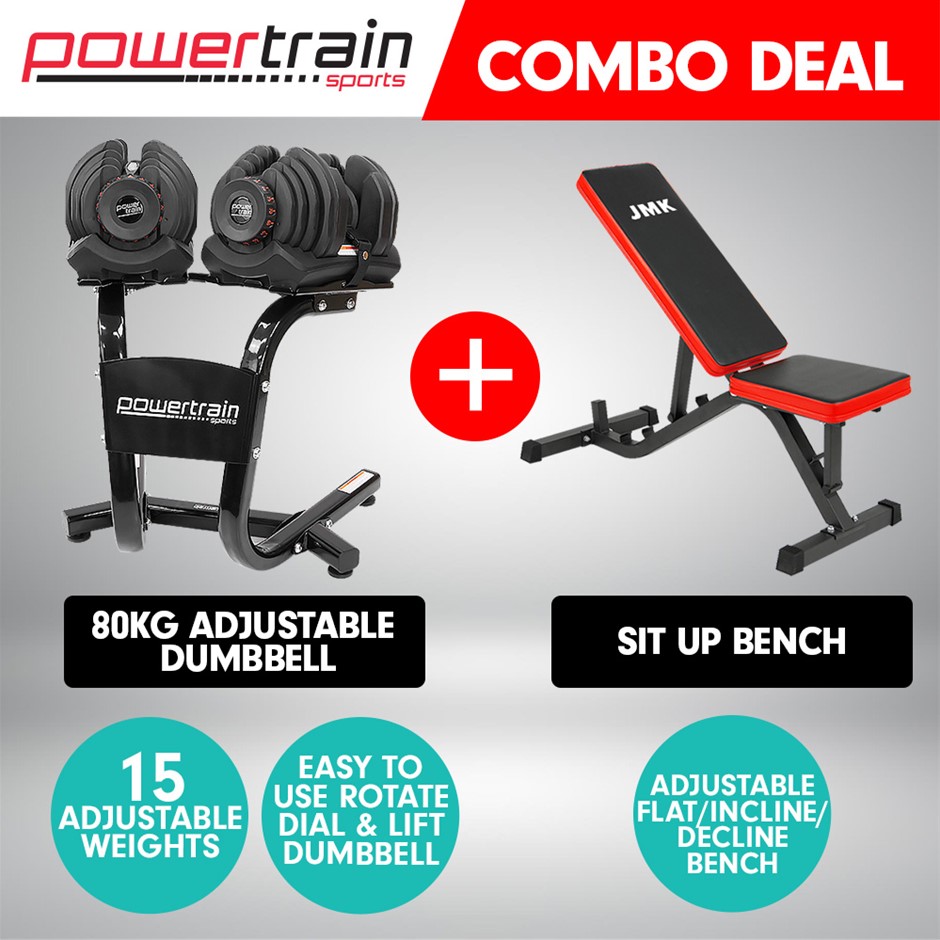 Ideal for your very own personal home gymNo more time wasting in adjusting weights!With the simple turn of the dial, you're ready to go with this new remarkable adjustable dumbbell.The innovative locking mechanism secures only the weights that you want, a few seconds is all it takes to change the weight.This means that you waste less time switching weights and spend more time building muscle to achieve your goals.Adjustable Incline-Decline Gym bench: An ideal addition to any home gym.This adjustable bench is just what you need to sit and do dumbbell arm curls and leg extensions, as well as being an incline-flat-decline bench press with a total load rating of 150kg.Both ends adjust in seconds and thick padding is designed to keep you comfortable.Built to last from heavy gauge powder-coated steel, this attractive bench will make your home gym look like the real deal.FEATURES:
