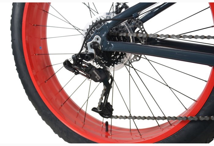 WHEELS: Fat 26 x 4.0 Tyres, Alloy 36 Hole Rims, Alloy QRF Hubs