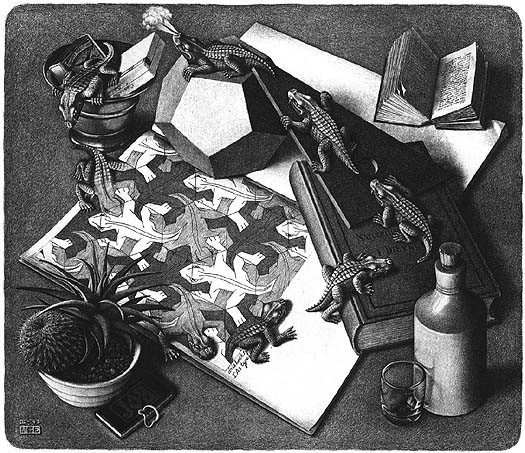 The Dutch engraver M.C Escher is widely acknowledged as one of the greatest artists of our century. His engravings are based on the greatest technical skill and a unique capacity to blend exact mathematical concepts with a fantastic and distorted interpretation of visual data